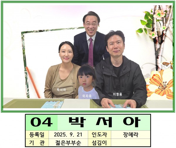 25년 9월 21일 작성자 정보 홍현준 작성 작성일 2025.10.02 14:04 컨텐츠 정보 348 조회 0 추천 목록 본문 박서아 성도님 등록을 환영합니다. 0 추천 SNS 공유 관련자료 이전 25년 9월 21일 작성일 2025.10.02 14:05 다음 25년 9월 21일 작성일 2025.10.02 14:02 댓글 0 등록된 댓글이 없습니다. 로그인한 회원만 댓글 등록이 가능합니다. 목록