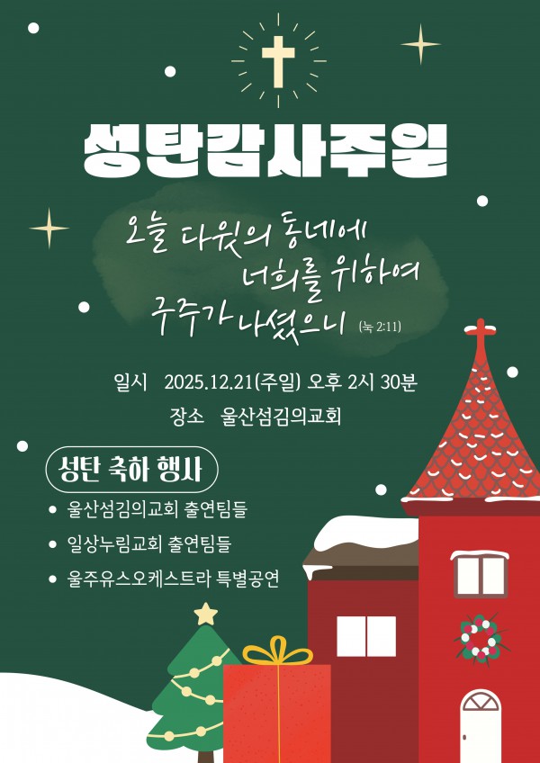 행복한 성탄 되세요. 작성자 정보 홍현준 작성 작성일 2025.12.15 12:35 컨텐츠 정보 787 조회 0 추천 목록 본문 성탄을 맞아 따뜻한 사랑과 평안이 함께하시길 바랍니다.기쁨과 감사가 가득한 성탄절 되세요.메리 크리스마스! 0 추천 SNS 공유 관련자료 이전 성탄 예배후 남자순에서 맛있는떡국을 했습니다 작성일 2025.12.25 12:50 다음 시인과 촌장 초청 _ 지역주민을 위한 힐링 콘서트 작성일 2025.10.25 20:09 댓글 0 등록된 댓글이 없습니다. 로그인한 회원만 댓글 등록이 가능합니다. 목록